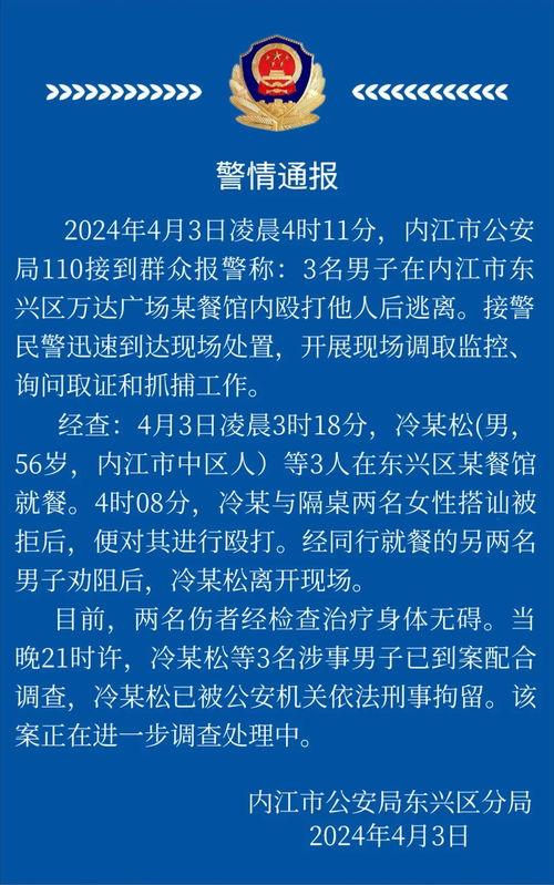 经过警方的调查,两名嫌疑人因涉嫌故意伤害罪,已被依法刑事拘留。目前,案件正在进一步审理中。据悉,受害者伤情较为严重,但经过及时救治,已无生命危险。
